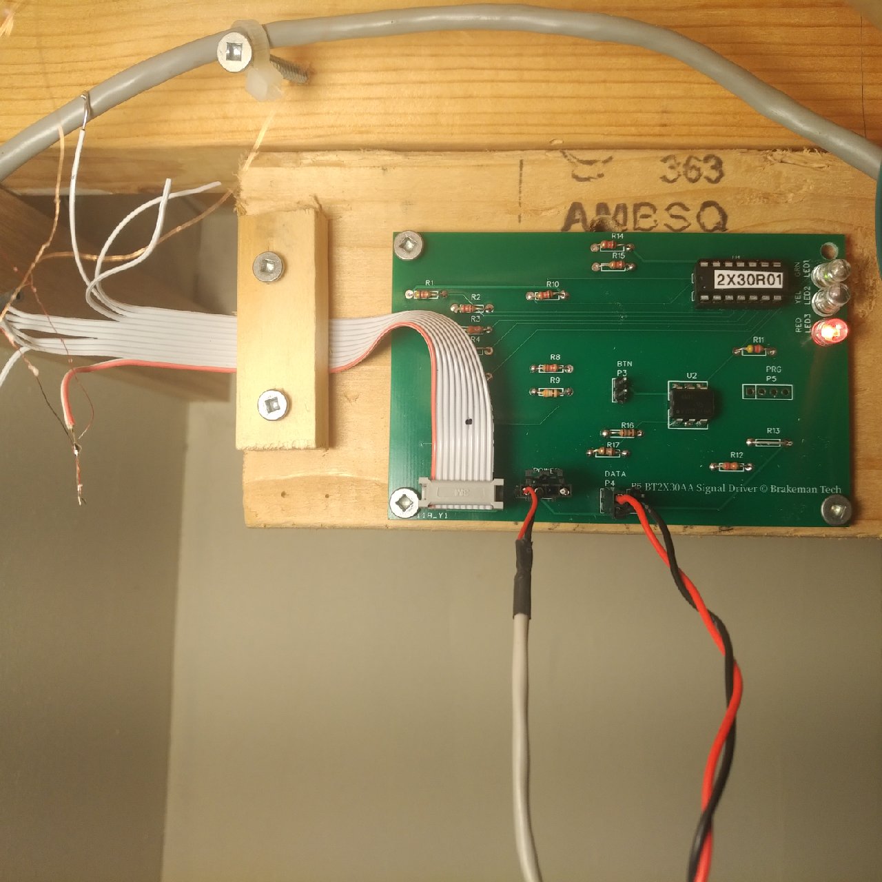 ![]() (board version BT2X30AA shown) ![]() board installed under layout with signal, power and data connected |